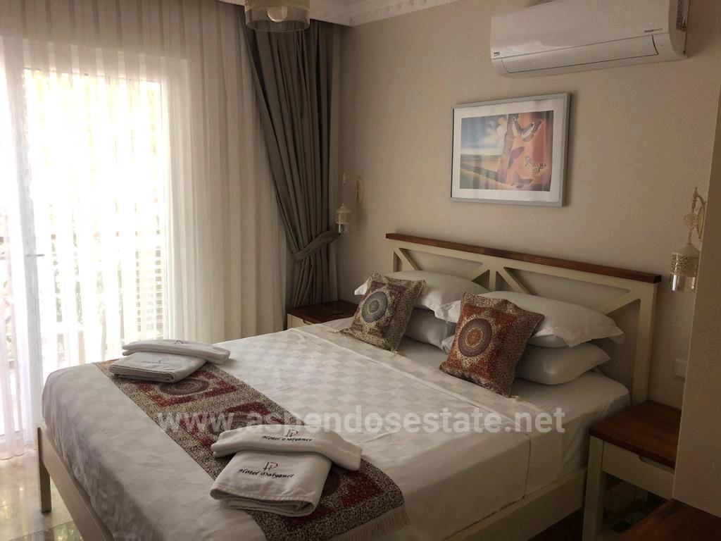 Boutique-Hotel in Dalyan Gülpınar, nur wenige Gehminuten vom Kanal entfernt, auf einem 1400 m2 großen Grundstück mit drei Seiten der Straße, steht zum Verkauf. Das in einem modernen Gebäude erbaute Boutique-Hotel verfügt über 17 Zimmer. Es verfügt über ein 150 m2 großes offenes und 150 m2 großes Innenrestaurant. Es verfügt über Fußbodenheizung und Zentralheizung. Der Pool ist ein Salzsystem und am Pool gibt es eine Terrasse zum Sonnenbaden. Der Garten wurde in die Architektur des Hotels integriert, dessen Landschaftsgestaltung durch üppige grüne Bäume und Blumen ergänzt wurde. Es ist Tourismus-zertifiziert. In der Küche gibt es einen Kühlraum. Für die Anlage gibt es einen speziellen Generator. Preis: 2.500.000€