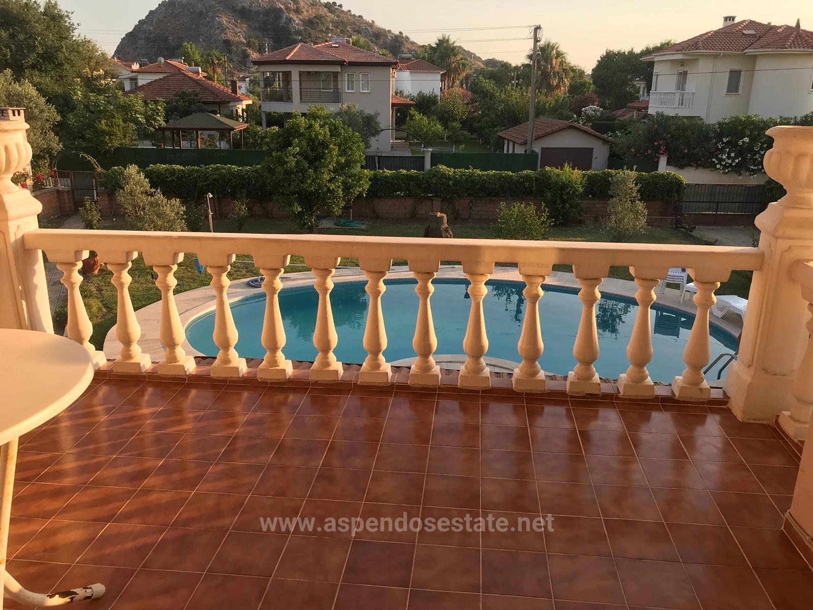 Eine Villa mit 4 Schlafzimmern, einem großen offenen Wohnbereich, einer separaten Küche und 3 Badezimmern mit insgesamt 250 m² Wohnfläche steht in Dalyan auf einem 1000 m² großen Grundstück zum Verkauf. Alle Zimmer sind klimatisiert. Beheizt wird die Villa mit einer Kombitherme. Ein Kamin und ein Außenpool gehören ebenfalls zur Ausstattung. Die Villa verfügt über einen großen Garten und liegt in fußläufiger Entfernung zu Einkaufsmöglichkeiten und dem Wochenmarkt. Der Strand von Iztuzu ist 10 km und der Flughafen 25 km entfernt. Das Stadtzentrum ist bequem zu Fuß erreichbar. Die Villa ist renovierungsbedürftig. Preis: 425.000 GBP.