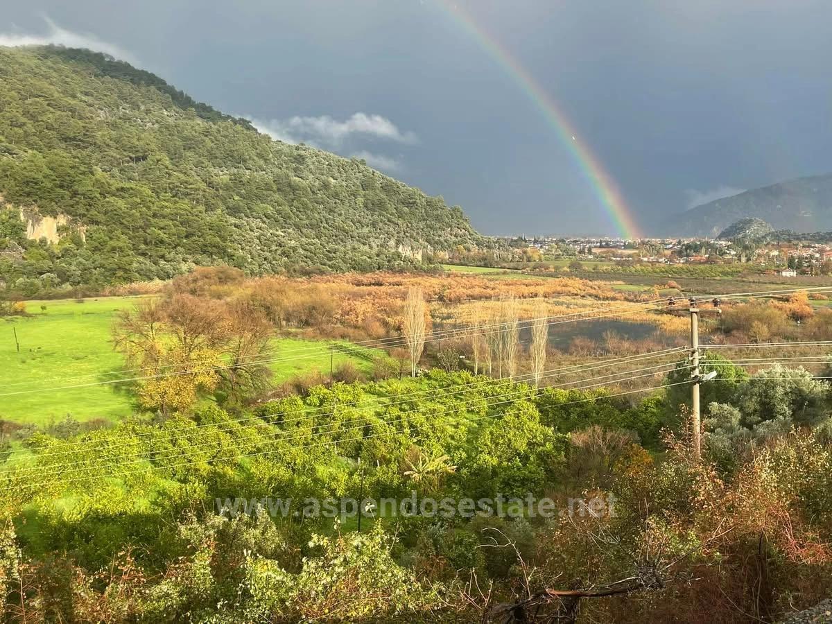 A 35,000 m2 plot of land with six buildings on it is for sale in the Çandır neighborhood of Köyceğiz. It is also suitable for use as a farm. The land, consisting of 3 title deeds, has no problems with roads, water, electricity, or telephone. One side of the property is bordered by a forest. It is connected to a one-way private paved road that ends on the land. The buildings on the land are suitable for tourism and organic farming investment. There is a deep well drilled on the land. There are lemon and orange trees in some parts. Eco-tourism is possible. The buildings on the property, which is 500 m2 from the Kaunos ruins, have no permit issues. The buildings are in a usable condition. It is located in a second-degree protected area. There are no additional settlements around it. It has a very quiet and natural living environment. It has nature and forest views. The land is 2 km from Dalyan, 30 km from the airport, 6 km from the beach, and 34 km from Köyceğiz. The price of the land is: 1,500,000 EURO
