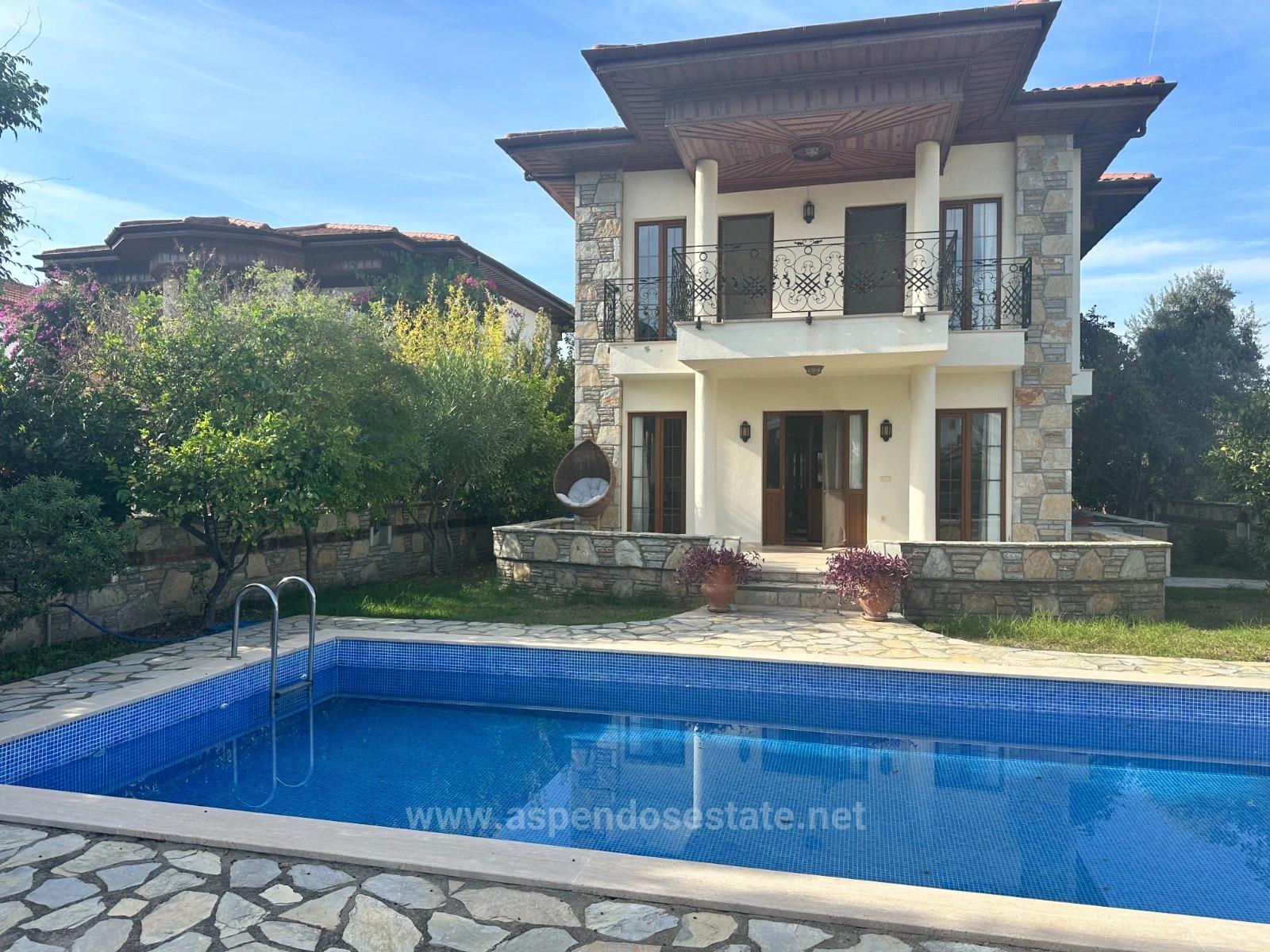 A villa on a 500m2 plot is for sale on a corner near the center of Dalyan. It has 4 bedrooms, 1 living room, open kitchen, 2 shared bathrooms and 1 en-suite bathroom. There is a bedroom on the ground floor. There is a detached outdoor swimming pool and barbecue. Every room is air conditioned. It is fully furnished and has a fireplace. It is within walking distance to shopping markets and the neighborhood market. The price of the villa, which is 10km from Iztuzu Beach and 25km from the airport: 410,000 GBP