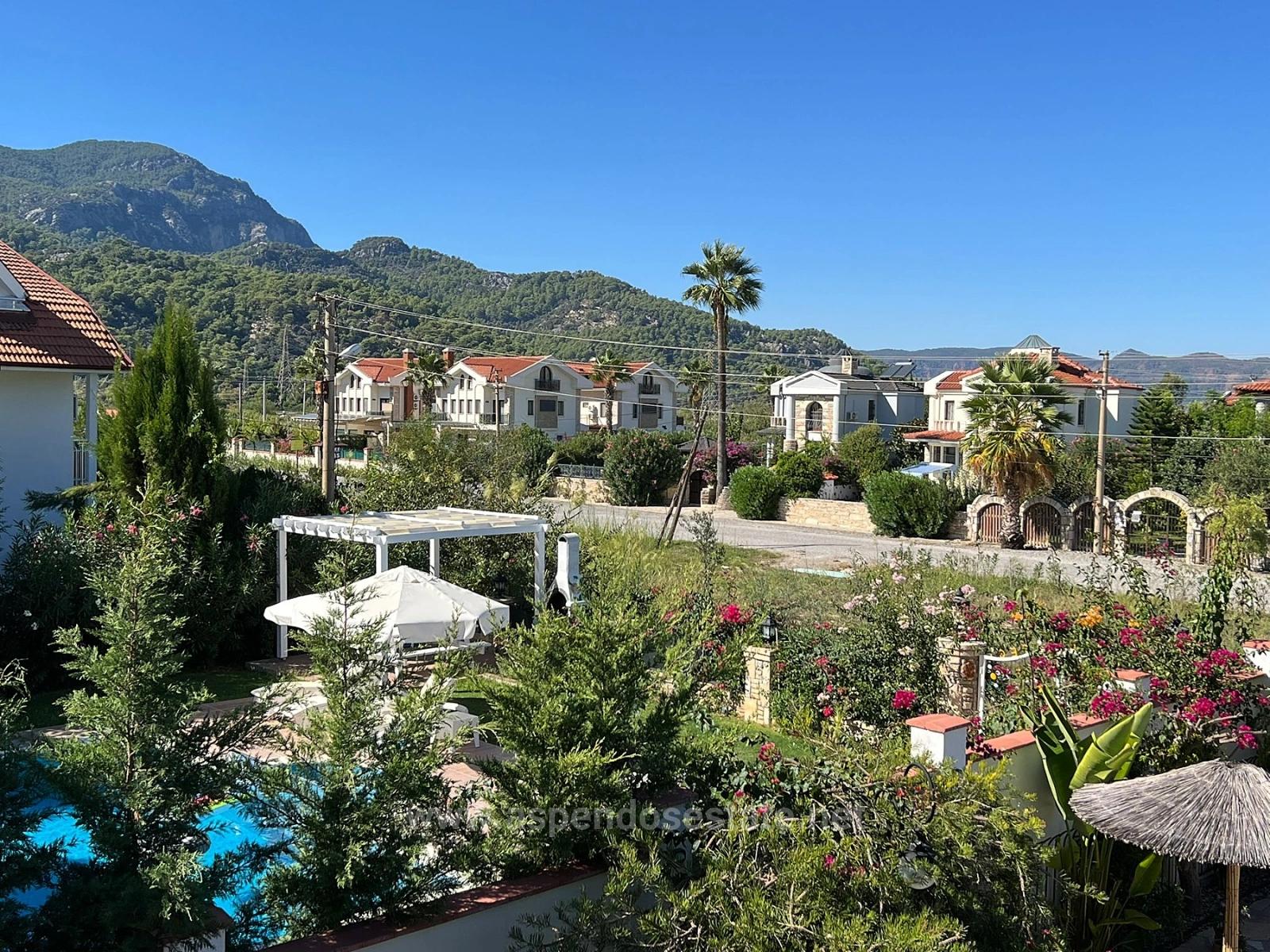 A detached stone villa is for sale on a corner plot of 580m2 in the Gülpınar area of Dalyan. It has an unobstructed view of a green area. The main building has 4 bedrooms, a large living room with an open kitchen, 3 bathrooms, 3 balconies, and a large terrace. Each room is air-conditioned. It is fully furnished. The villa is entirely constructed of natural stone with predominantly wooden workmanship. Visually, it is very stylish and in keeping with the region. It has a 45m2 outdoor swimming pool with a saltwater system. There is also a separate 1+0 bathroom and approximately 50m2 of living space. Additionally, there is a pool storage area and a storage room for materials. The villa has been recently renovated and requires no further investment. It is within walking distance of shopping markets, 10km from Iztuzu Beach, and 25km from the airport. The villa offers nature and forest views. The price is: 500,000 GBP
