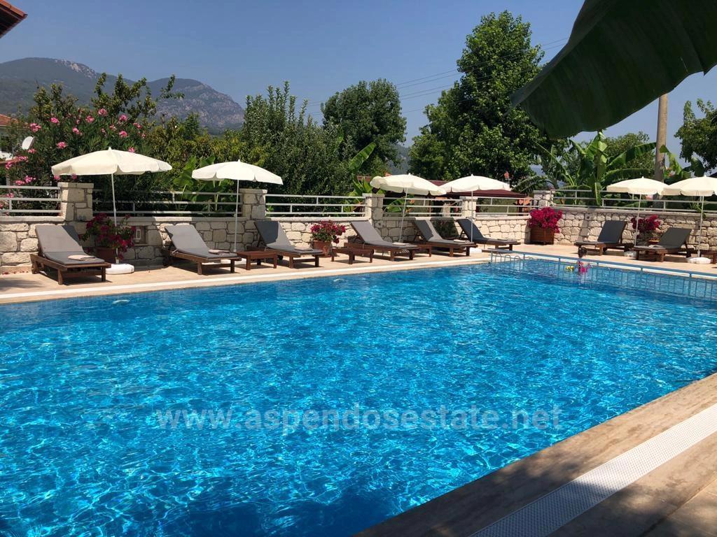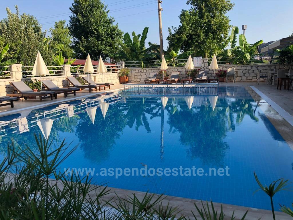 Продается бутик-отель в Дальян Гюльпынар, в нескольких минутах ходьбы от канала, на участке площадью 1400 м2 с тремя сторонами дороги. Бутик-отель построен в современном здании и располагает 17 номерами. В отеле есть открытый ресторан площадью 150 м2 и крытый ресторан площадью 150 м2. Имеется пол с подогревом и центральное отопление. Бассейн представляет собой соляную систему, а у бассейна есть терраса для принятия солнечных ванн. Сад гармонично вписан в архитектуру отеля, ландшафтный дизайн которого дополнен пышными зелеными деревьями и цветами. Имеет туристический сертификат. На кухне имеется холодильная камера. Для объекта имеется специальный генератор. Цена: 2.500.000€
