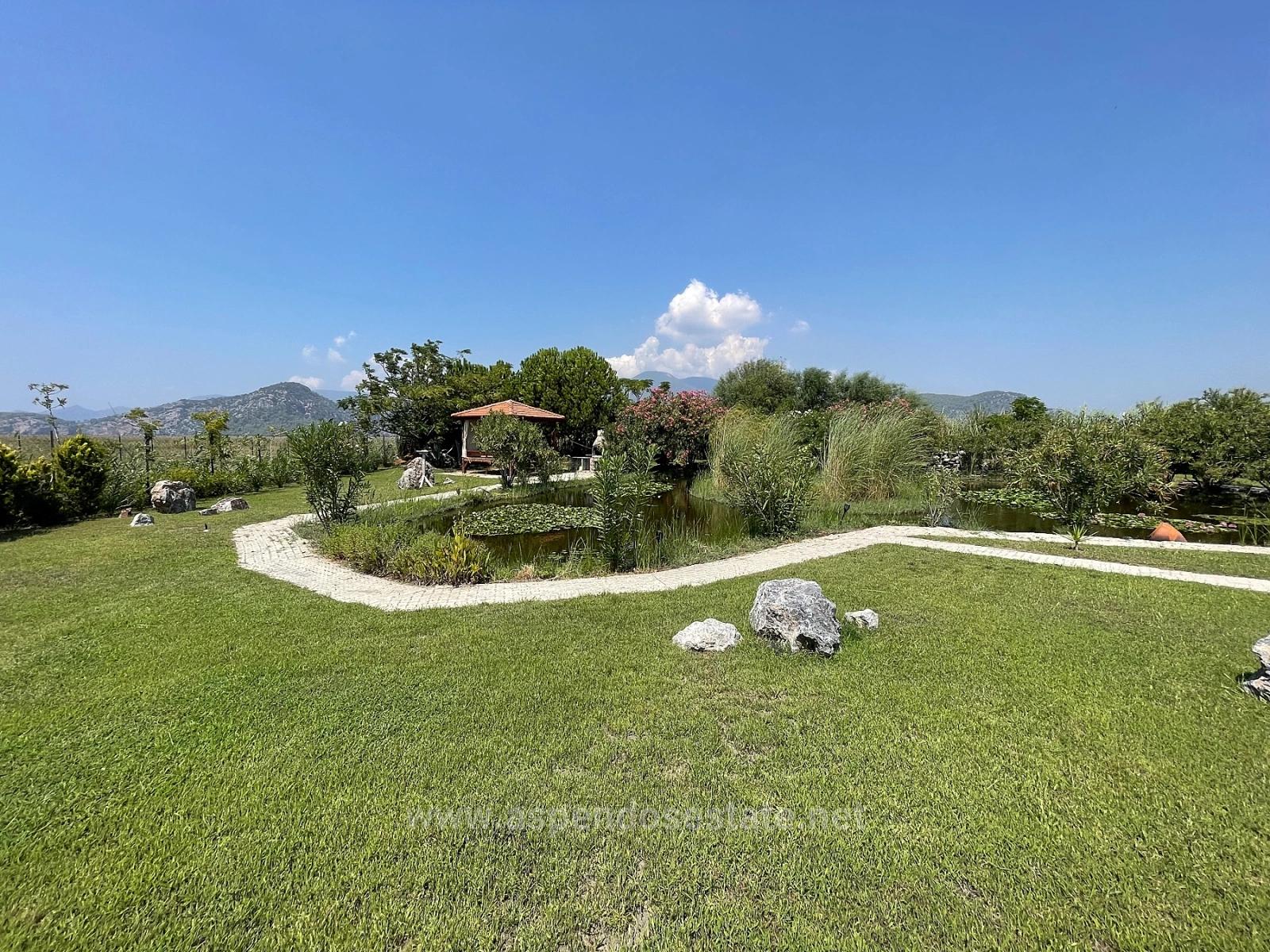 Расположенная на участке площадью 7000 м2 на дороге к пляжу Истузу в Даляне, эта вилла располагает 4 спальнями, гостиной с камином и кухней, 4 ванными комнатами, полностью меблирована, отремонтирована и оборудована кондиционерами в каждой комнате. Вся бытовая техника новая. Вилла имеет собственный открытый бассейн с системой соленой воды и искусственный пруд с рыбами перед виллой. Сад благоустроен, есть барная стойка и беседка. Вилла имеет балкон и террасу. Дополнительные расходы отсутствуют. Она находится в 5 минутах от магазинов и рынка, в 8 км от пляжа Истузу и в 25 км от аэропорта. Из виллы открывается вид на Истузу и гробницы царей. Цена: 1 100 000 GBP