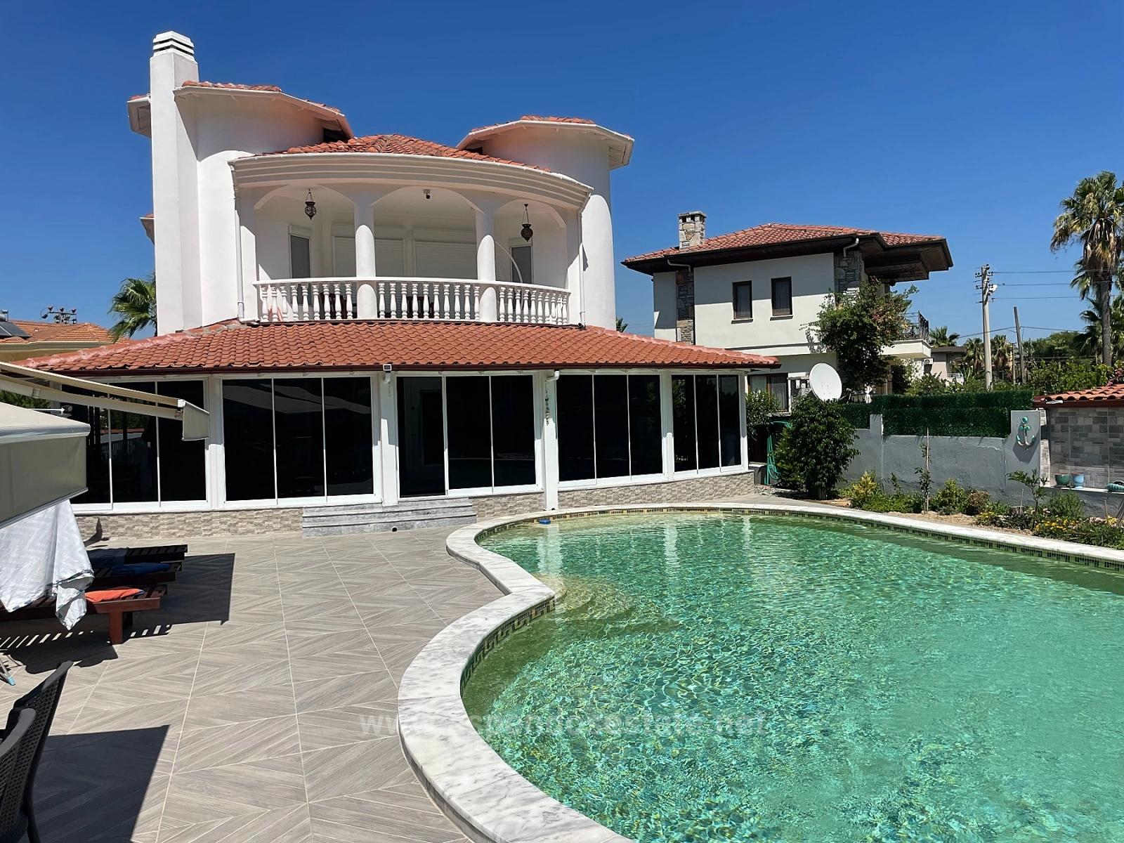 Расположенная в Дальян Гюльпынар, эта вилла находится на участке площадью 720 м2 и включает в себя 4 спальни, гостиную с открытой кухней и 4 ванные комнаты. Одна спальня находится на первом этаже. Также имеется хозяйственная постройка в саду. Это вилла с 1+1 спальней, 1 ванной комнатой и крытой парковкой. Вилла располагает открытым бассейном с системой очистки воды соленой водой и зоной отдыха у бассейна. Вилла не требует дополнительных затрат; она недавно была отремонтирована, и все было обновлено. Она находится в нескольких минутах ходьбы от центра города, в окружении местных и иностранных инвесторов, а также в нескольких минутах ходьбы от торговых рынков и местного базара. Вилла, из которой открывается вид на природу и лес, находится в 10 км от пляжа Истузу и в 26 км от аэропорта. Цена виллы составляет 765 000 евро.