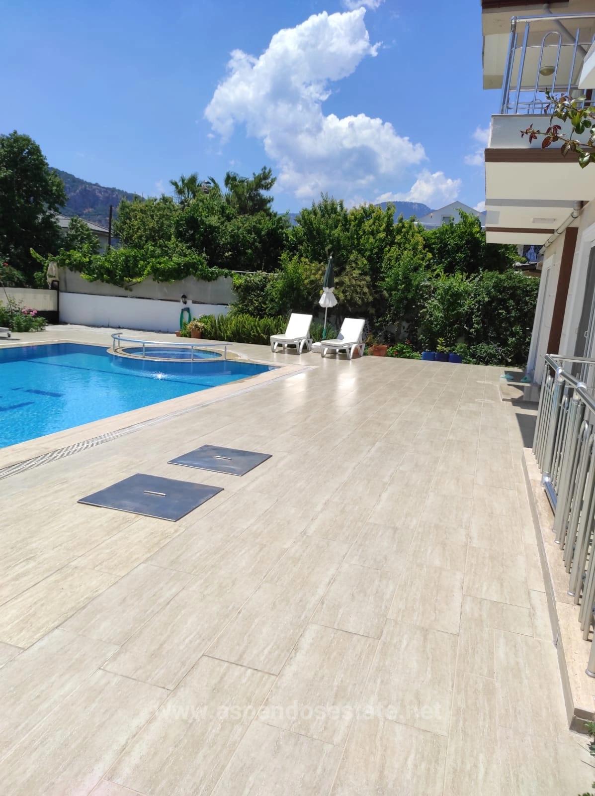 В Дальян Гюльпынар продается вилла, расположенная на участке земли площадью 545 м2. Вилла включает 4 спальни, 4 ванные комнаты, гостиную с открытой кухней и частный открытый бассейн на первом этаже. В каждой комнате есть кондиционер. Вилла полностью меблирована. В шаговой доступности находятся торговые центры. Вилла расположена в 10 км от пляжа Истузу и в 28 км от аэропорта, из окон открывается вид на природу и лес. Цена: 25 000 000 TL