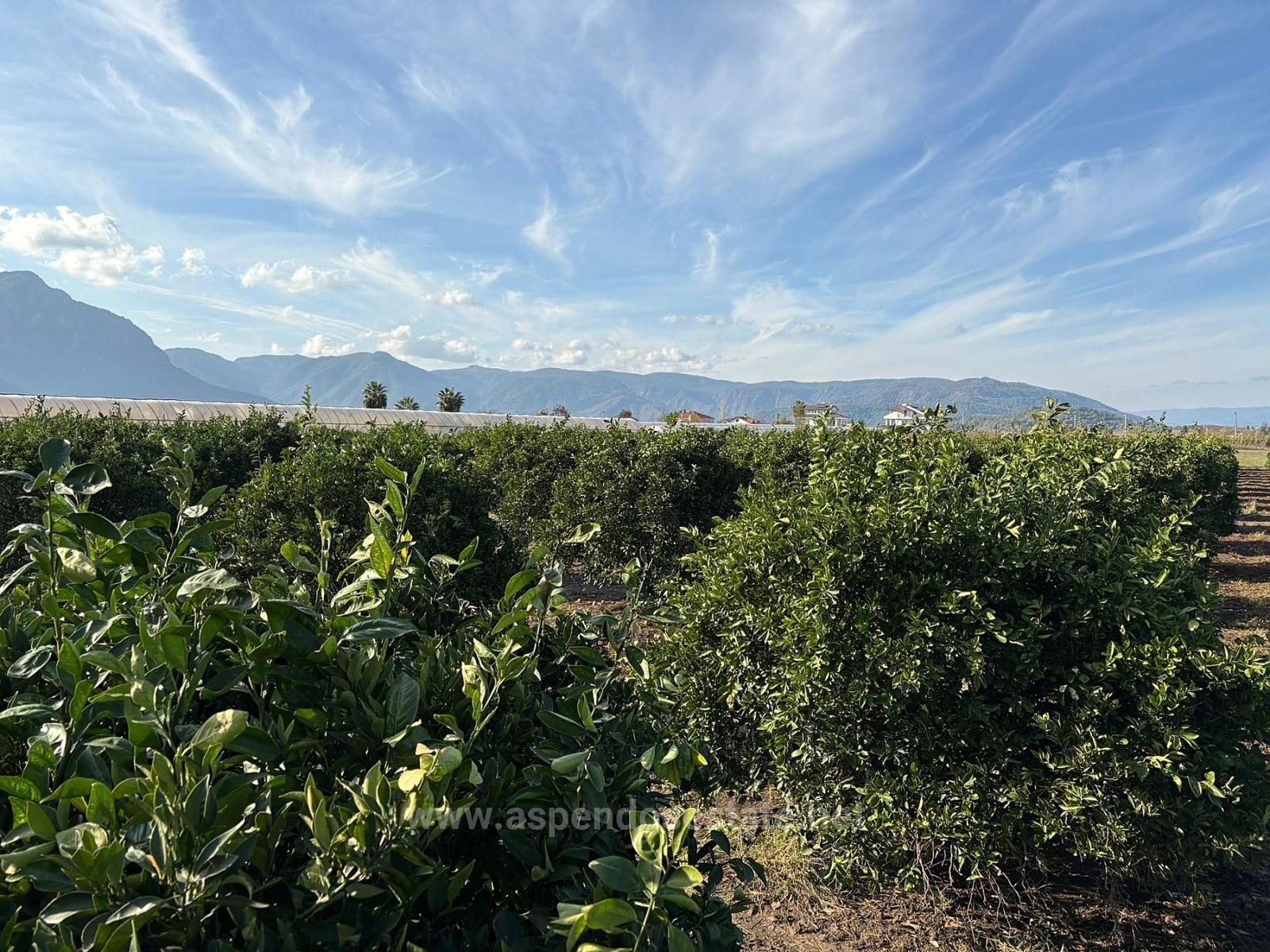 На всей территории высажены апельсиновые деревья. Для полива имеется глубокая артезианская скважина.