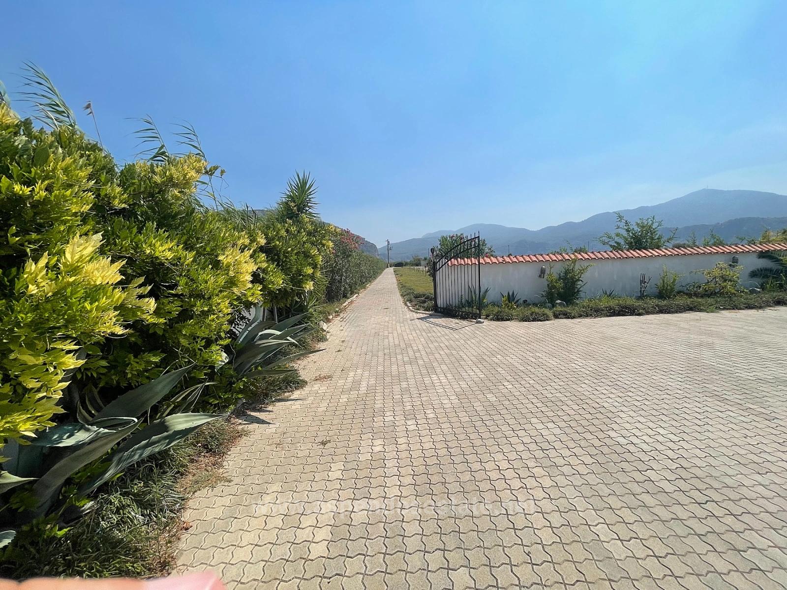 Dalyan İztuzu plaj yolu tarafında 7,000m2 arsa içerisinde 4 yatak odalı 1 salon şömüneli + mutfak bağımsız 4 banyolu full eşyalı herşey yenilenmiş her odanın kiliması vardır tüm beyez eşyaları yenidir. özel müstakil tuzlu su sistemli açık yüzme havuzlu ayrıca villanın önünde yapayı balıklı göl vardır. hahçe dizaynı yapılmı dişarıda bar bükü ve kamalya köşkü vardır. villanın geliş balkonu ve teraslıdır. hiç masrafı yoktur alış veriş ve sent pazarında 5 dk iztuzu plajına 8 km havaalanına 25 km mesafesi olan villa iztuzu ve kral mezarları manzaralıdır. fiyatı: 1,100,000GBP