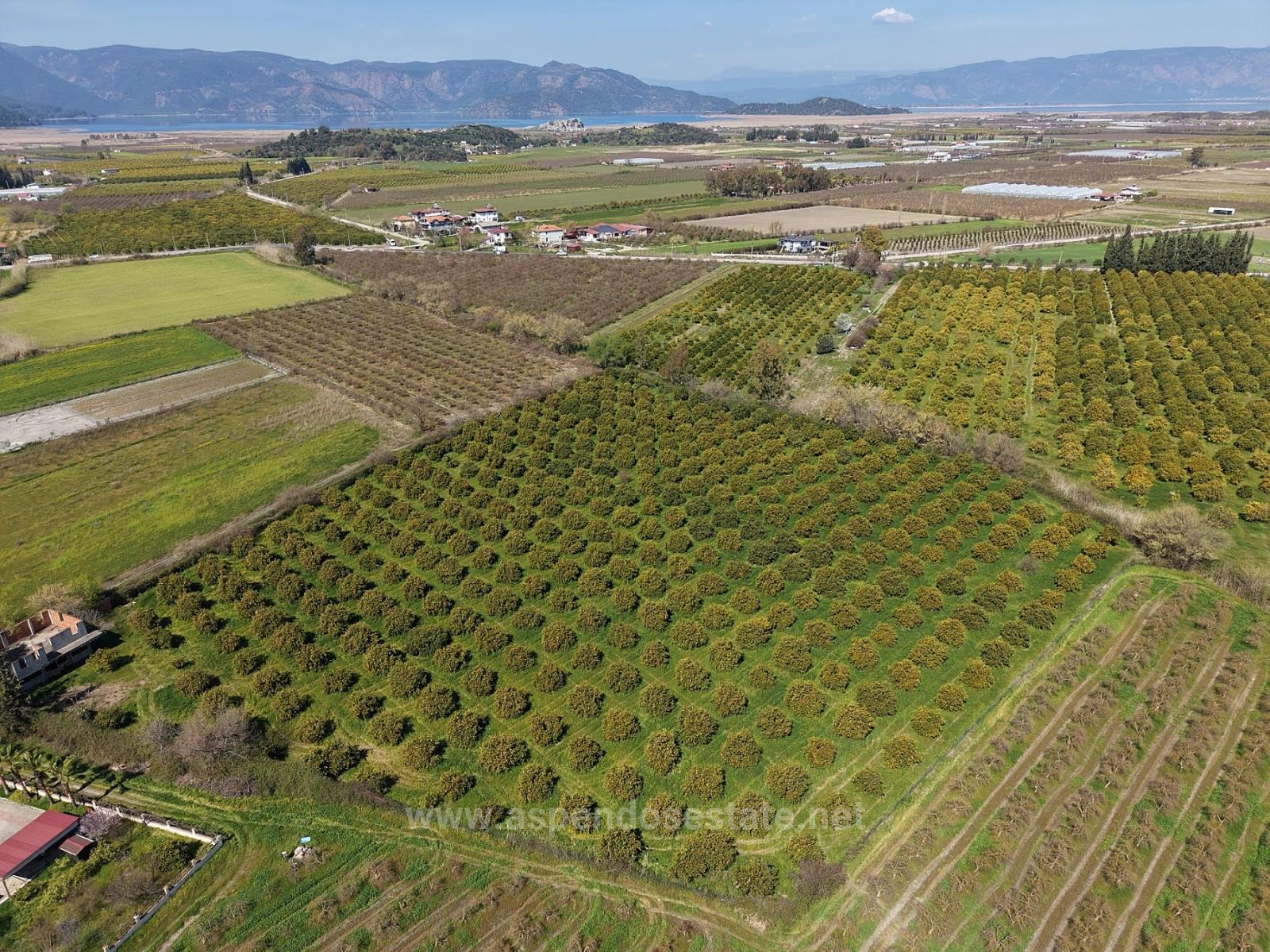 Dalyan merkeze yakın 17.550m2 narenciye bahçesi satılıktır. İçerisinde yaklaşık 200m2 yapı kayıt belgeli bina bulunmaktadır. Yol, su, elektrik, telefon sorunu yoktur. Yıllık meyve getirisi 60-70 tona yakındır. Etrafında yapılaşmalar mevcuttur. Bina tadilat ruhsatı ile düzenlenebilir. Dalyan merkeze 2 km, İztuzu Plajı'na 12 km, havaalanına 25 km mesafesi olan bahçenin fiyatı: 1.650.000 Dolar