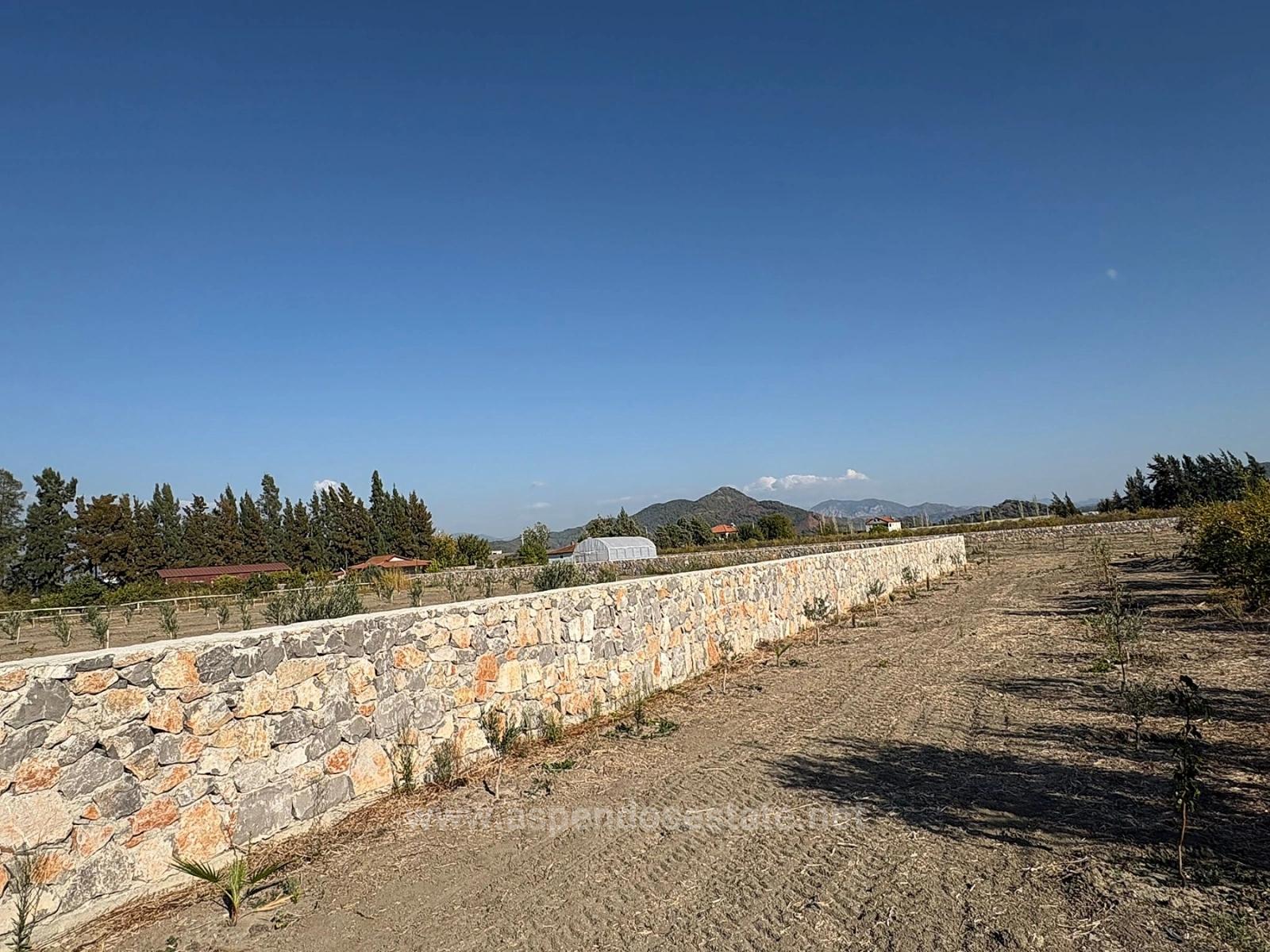 Eskiköy'de 19.663m2 çiftlik arazisi ve bağ-bahçe niteliğinde olan ev satılıktır. Arazi içerisinde iki tane yapı bulunmaktadır. 1 adet ev olmakta olup yaklaşık 120m2 alanı vardır. İkinci yapı 200m2'ye yakın kapalı depo alanıdır. 2 tane derin kuyu su pompası vardır. Arazi bir kısmı zeytin bir kısmı ise nar bahçesidir. Etrafı taş duvar ile çevrilidir. Özellikle zeytin dikilen bölgede kış aylarında su birikmemesi için ölçekli zemin yapılmıştır. Yol, su, elektrik, telefon sorunu yoktur. Dalyan'a 5km, İztuzu Plajı'na 15km, Ortaca'ya 12km, havaalanına 30km mesafesi olan tarlanın fiyatı: 35.000.000 TL
